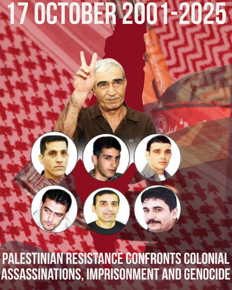 This date, 17 October, reminds us that, despite the full-scale impunity provided to the genocidaires by the United States, Britain, Canada, the European Union countries and other imperialist powers, at the hands of the Resistance, Zionist crimes do not go unpunished. As the Abu Ali Mustafa Brigades successfully avenged the assassination of Abu Ali Mustafa, national leader and symbol of the Palestinian people, on 17 October 2001, the Palestinian resistance, led by the Izz el-Din al-Qassam Brigades, exposed the illusions of the impenetrability of the Zionist military on the day of the great crossing, 7 October 2023, with the launch of the Al-Aqsa Flood operation and the beginning of the new era of the Palestinian Revolution, and indeed, the global intifada.