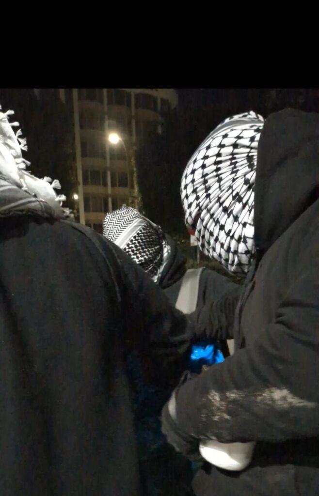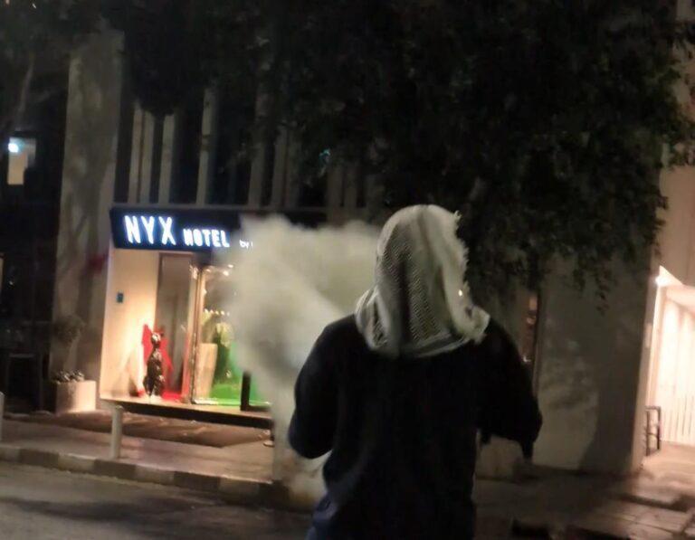 In the early hours of Monday, October 13, 2025, at around 3:00 a.m., we went to the Nyx Hotel on the Limassol coast, throwing bottles of red, black, white, and green paint as a sign of solidarity with the struggling people of Palestine.