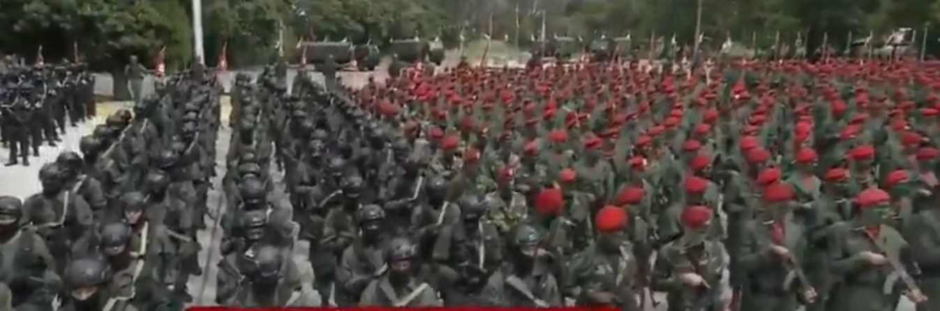 More than 5,600 fighters stood in formation, declaring themselves revolutionary, socialist, and, above all, loyal to the Bolivarian revolution. They boasted training under a “tactical resistance” doctrine that blends soldiers, police, and civilians into a single combat force prepared for a prolonged war. These 5,600 fighters were just sworn in as a new, trained force to buttress the mililtary effort, in response to US imperialist aggression.