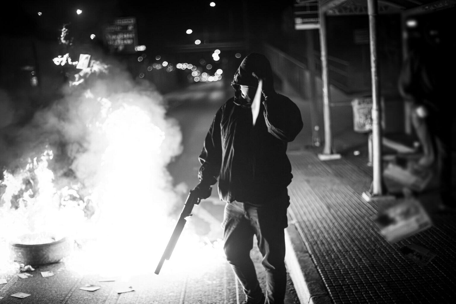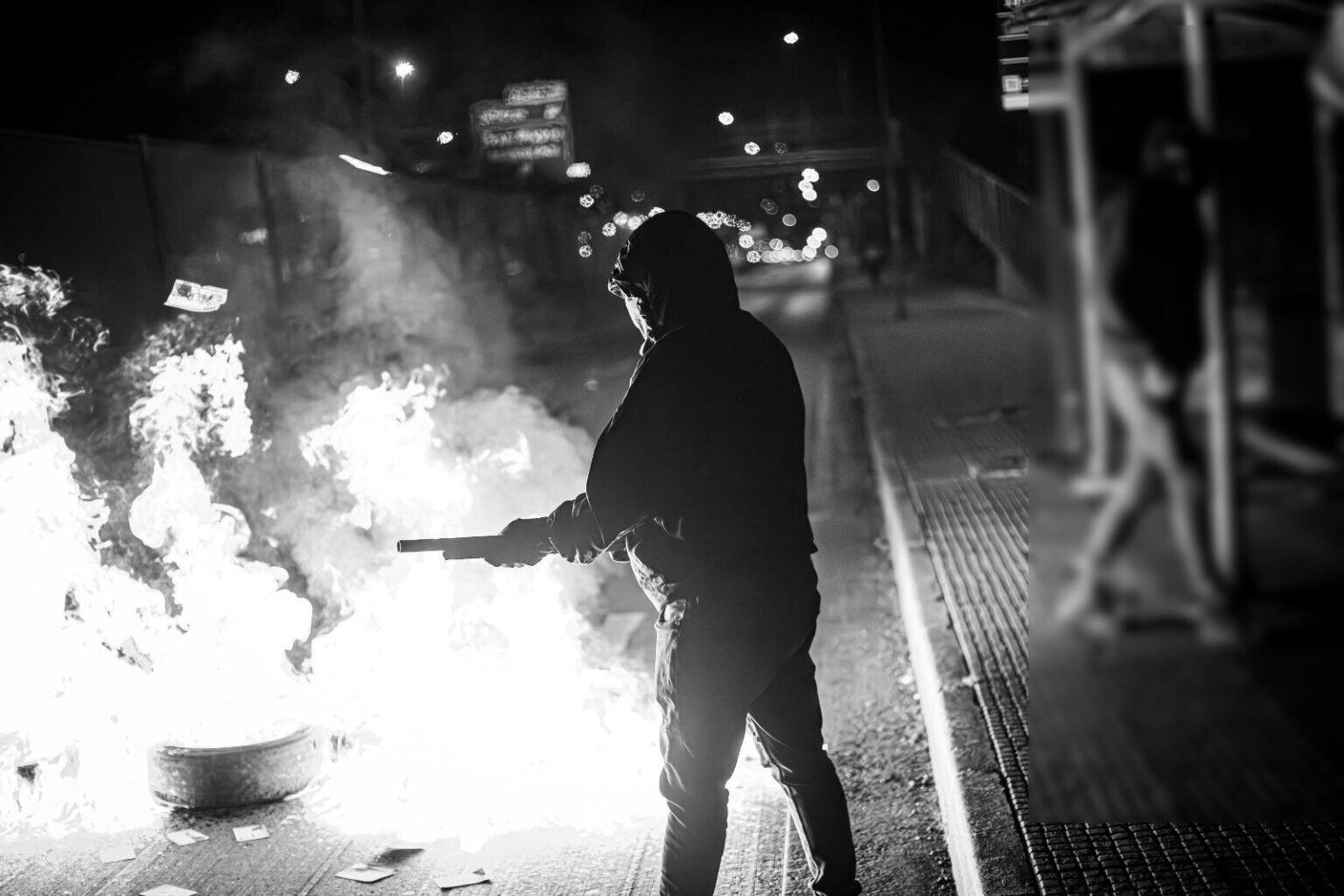 Hooded people set up barricades in Villa Portales in memory of the anarchist comrade Sebastián Oversluij on the verge of marking 12 years since his murder following an attempted expropriation of a bank branch in the commune of Pudahuel.