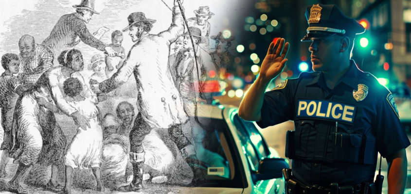 The practice of surveilling, over-policing, randomly stopping, and demanding documentation of Black and Brown people suspected of alleged criminality is not a unique feature of modern policing. These are the tactics established by the slave patrols that shape all aspects of policing today.