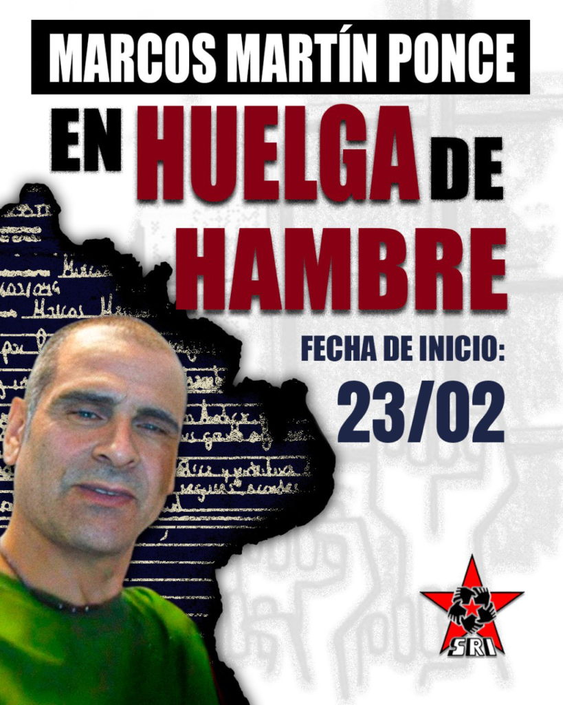 Marcos Martín Ponce, an anti-fascist prisoner with GRAPO (First of October Anti-Fascist Resistance Groups) serving a life sentence, began an indefinite hunger strike on February 23 to protest the Spanish authorities’ refusal to guarantee appropriate medical care for anti-fascist prisoner María José Baños Andújar.