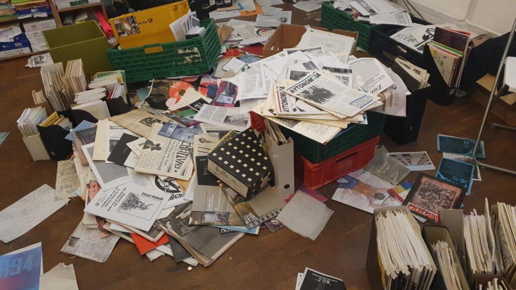 In addition, dozens of pamphlets—mostly dealing with repression, clandestinity and militancy—as well as individual issues of the „Autonomes Blättchen“ and a rather haphazard-looking selection of books were taken along, such as the biography of Assata Shakur, Detlef Hartmann’s critique of Negri, Gabriel Kuhn’s work on indigenous resistance in Sápmi, the Manifesto of Freedom and Peace, and various books bearing the telling note “Books in Greek” (sic!). Why they also broke into the building’s boiler room and used a battering ram on the way there instead of simply using the set of keys they found is likely another mystery that only the limited mind of a police officer can comprehend.